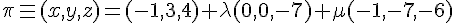=(-1,3,4)+\lambda(0,0,-7)+\mu(-1,-7,-6))
