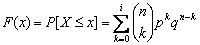 Función de probabilidad donde k = 0,1,2,...,n Función de distribución donde i es la parte entera de x Esperanza matemática