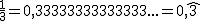 Tienen infinitas cifras decimales que siguen una pauta a partir de una dada, a las cifras que se repiten se les llama periodo,como no se pueden expresar las infinitas cifras se coloca un arco sobre las cifras que forma el periodo, ésto indica que hay infinitas cifras que se repiten según el perido fijado.