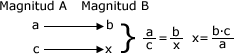 Dadas dos magnitudes, se conocen la equivalencia entre un valor de una y el valor de la otra. Entonces para cada nuevo valor que se de a una magnitud calculamos el valor proporcional de la segunda magnitud