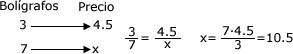 El precio de tres bolígrafos es de 4.5 € ¿Cuánto cuestan 7 bolígrafos?