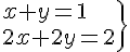 Este caso se produce cuando las ecuaciones son proporcionales, es decir, una ecuación es igual a la otra multiplicada por un número, en este ejemplo la segunda ecuación es igual a la primera por 2. La segunda ecuación no proporciona información para la resolución del sistema, entonces x+y=1, luego y=1-x. Cualquier par de números de la forma (x,1-x) son solución del sistema.