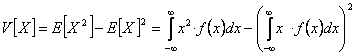 Se define la varianza como la esperanza del cuadrado de la diferencia entre la variable y su esperanza: V(X) = E[ (X - E[X] )2 ], teniendo en cuenta la definición de esperanza, la varianza queda
